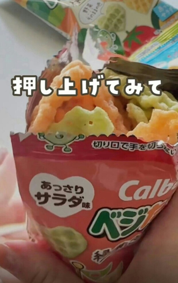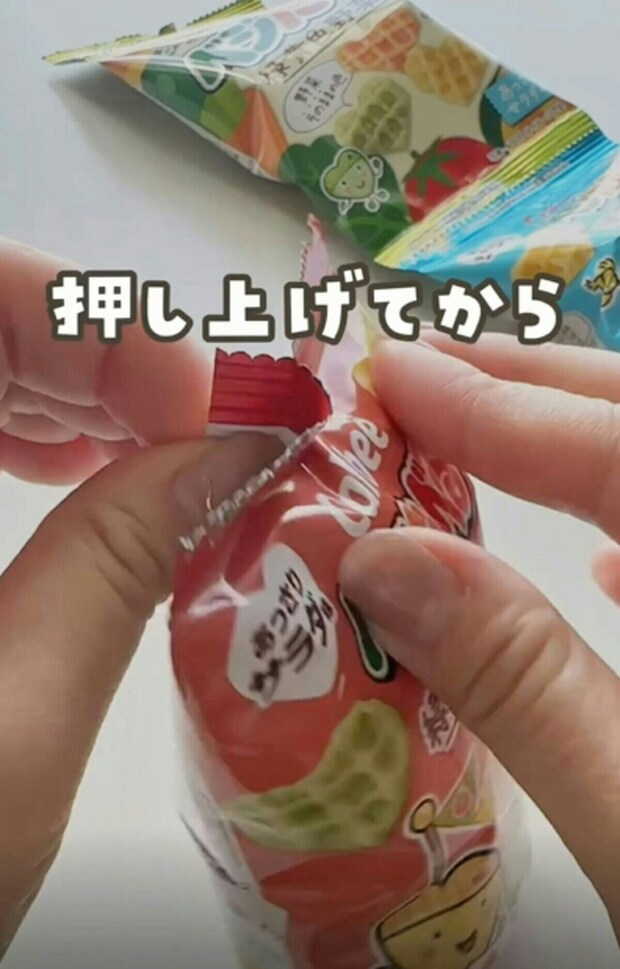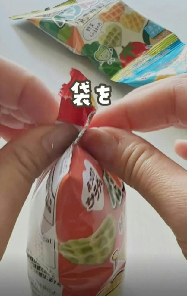 お菓子の袋がピンと立つ!【ライフハック】子どもも食べやすい開け方テクが便利