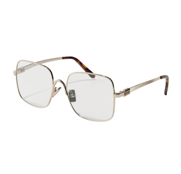 「さり気ないロゴもいい感じ」メガネ¥62,700(ミュウ ミュウ/ルックスオティカジャパン カスタマーサービス)