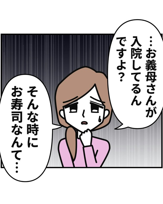 夫の母親が入院中に家にやってきた義父が「寿司を取ろう」と言ってくれました。喜ぶ夫のとなりでみゆきさんは、戸惑いを隠せません。そんなみゆきさんの様子を見て、夫はとんでもないことを言い出します。