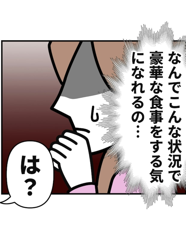 みゆきさんは、義母の入院中に豪華な食事をする気持ちになれないでいました。そんなみゆきさんに夫がなにか思ったようです。