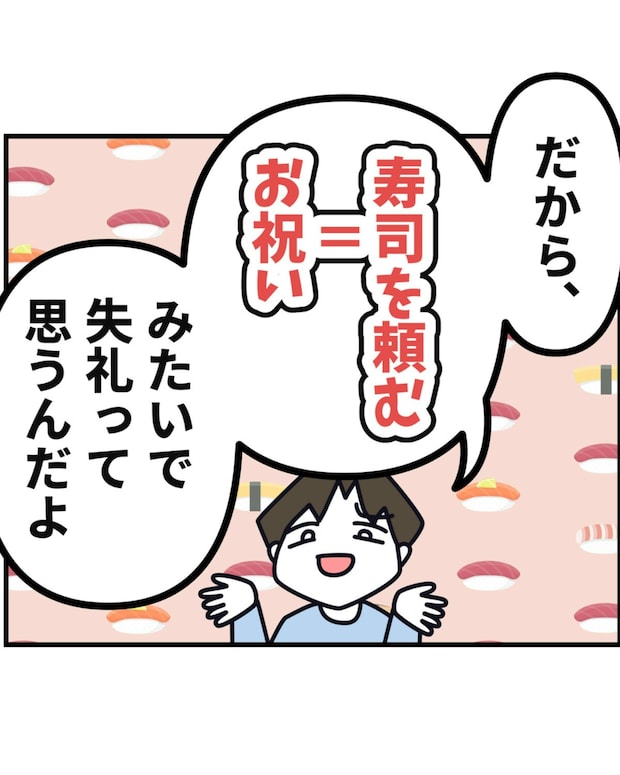 夫が喜んでる隣で「豪華な感じ」という言葉が気になったみゆきさん。こんなときにお寿司を取ることを少し躊躇しています。