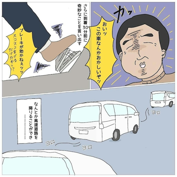 「ブレーキが効かない」という映画のようなハプニングがありつつも、なんとか高速道路を降りることができました。
