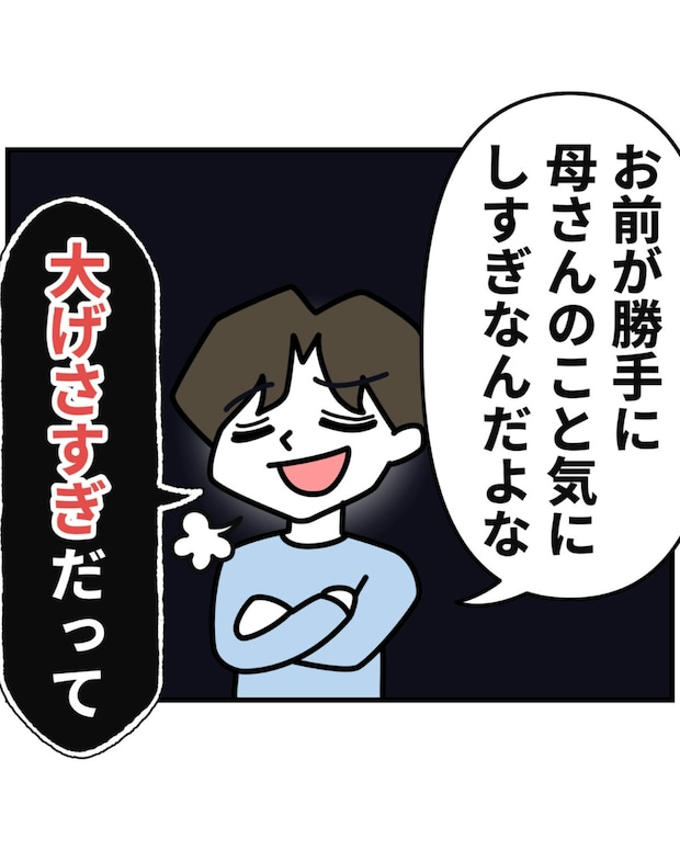 夫は勝手にみゆきさんが思ってもいない義母への気持ちを決めつけてきたあげく、「大げさだ」と言ってきました。みゆきさんは反論しようと口を開いたものの、夫の話は止まりません。
