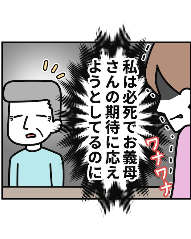 今までずっと義母との関係に気を使ってきたのに、何も知らない夫に勝手なことを言われて怒りが爆発しそうなみゆきさん。