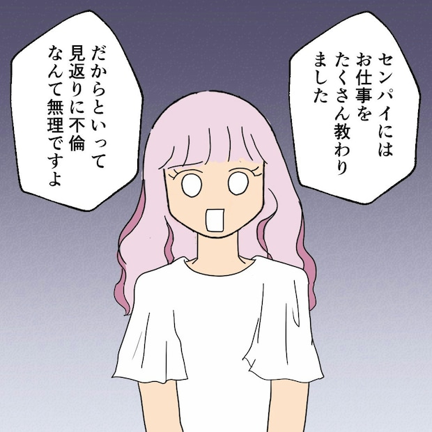 後輩女性は、「不倫なんてムリ」と言います。亜馬斗に対して好意はなく、勝手に亜馬斗がかんちがいをし、舞い上がっていただけでした。