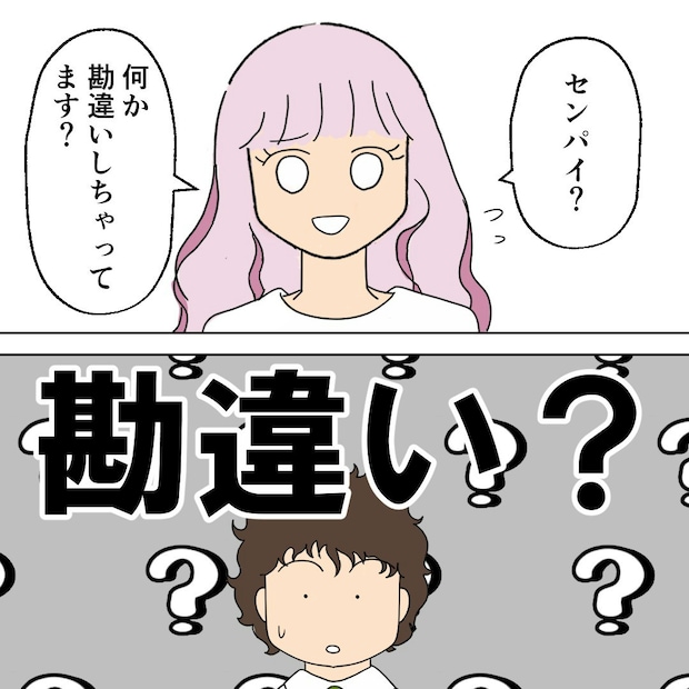 亜馬斗は、まだ「後輩女性は自分に好意がある」と思い込んでいる様子。後輩女性は「かん違い」と、バッサリ切り捨てました。