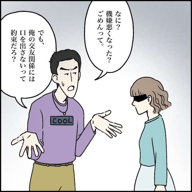 あまりの身勝手さに私は言葉を失い、ただうつむくことしかできませんでした。するとタカシは、「なに? 機嫌悪くなった? ごめんって」と軽く謝りながら、「でも俺の交友関係には口を出さないって約束だろ?」と言いました。
