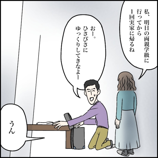 「私、明日の両親学級に行ってから1回実家に帰るね」そう伝えると、タカシはバーベキューの準備を続けながら、「おーひさびさにゆっくりしてきなよー」と言いました。私が何も言わなければ、我慢すればこのまま平和でいられる。私は喉まで出かかった不満を飲み込んで「うん」と応えました。