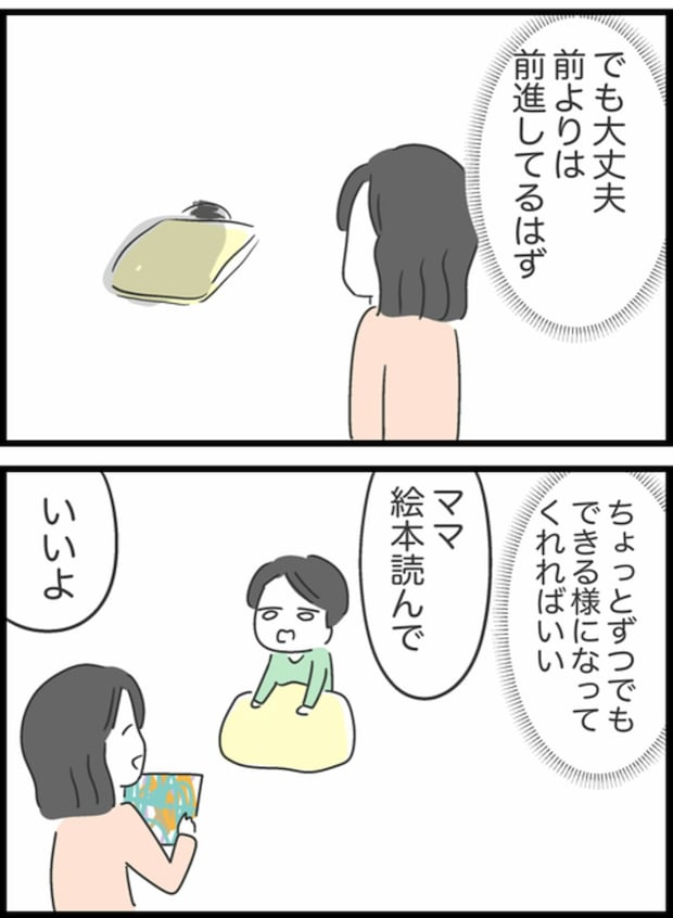 なぜ、しょうたは頑なに子育てをしないのでしょうか?妻の大変さを理解しようとしないのでしょうか?とてももどかしいですね。一歩進んだと思ったのに、また戻ってしまいました。それでも、家族として成長できるといいですね。
