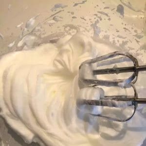 2. 別のボウルに卵白と塩、レモン汁を入れてしっかり泡立てます。