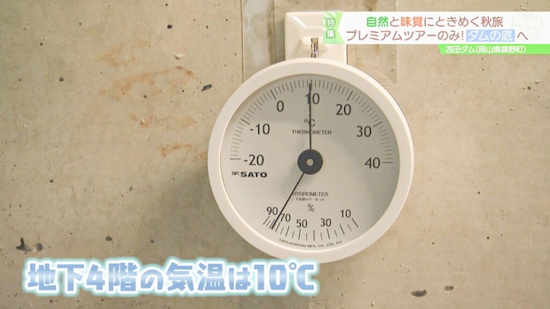 地下4階に降りていくと、ダム湖の影響を受けて気温が下がり…