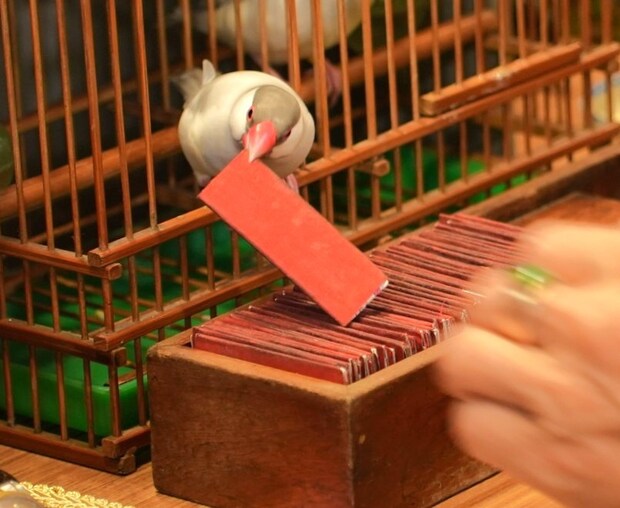なんと、小鳥がカードを選んで占ってくれるんです…!