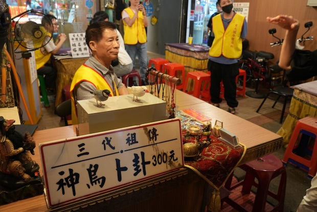 次は何を食べようかと歩いていると、目に入ったのが「小鳥占い」。