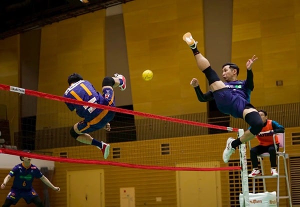 セパタクローは、ネットを挟んで足や頭を使ってボールを蹴り合う、そのアクロバティックなプレーから「空中の格闘技」とも呼ばれる東南アジア発祥のスポーツだ。