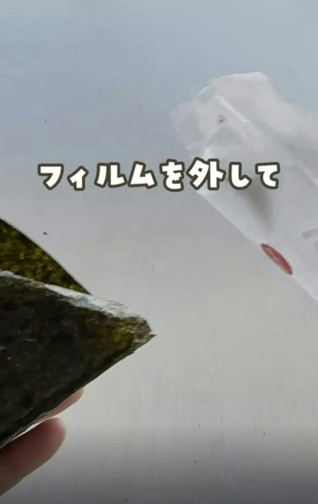 剝がしたフィルムは捨てずに反転させ、おにぎりにはめ直します。