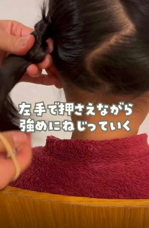 次に、左手で押さえながら、右手で強めにねじっていきます。