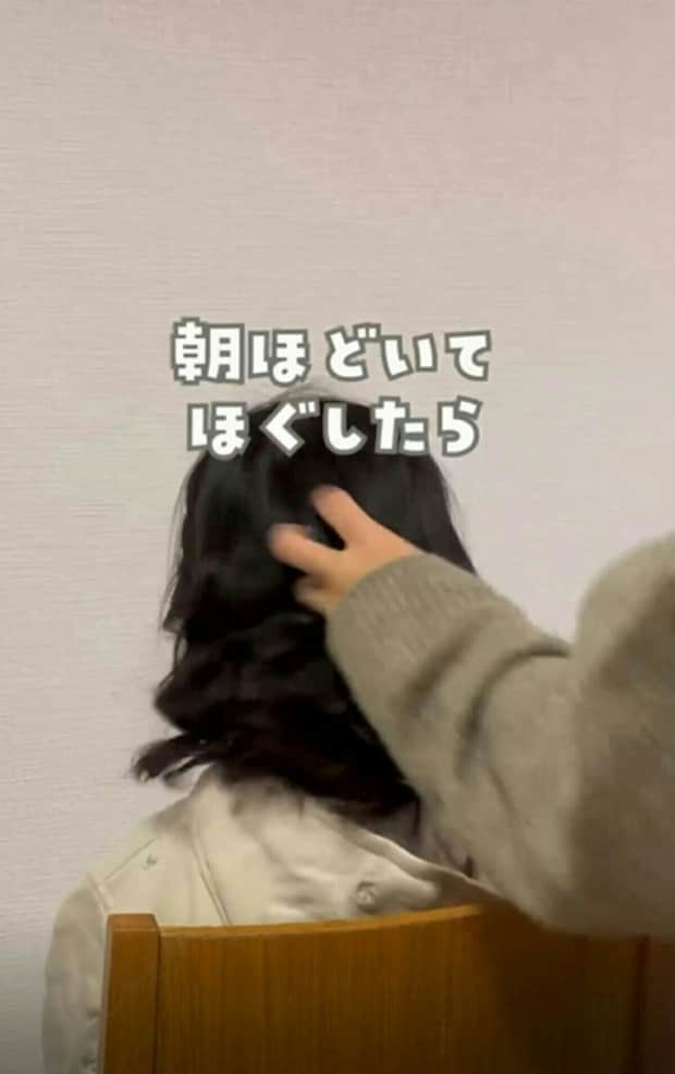 翌朝、髪の毛を解きます。まとまっている部分は手でほぐします。
