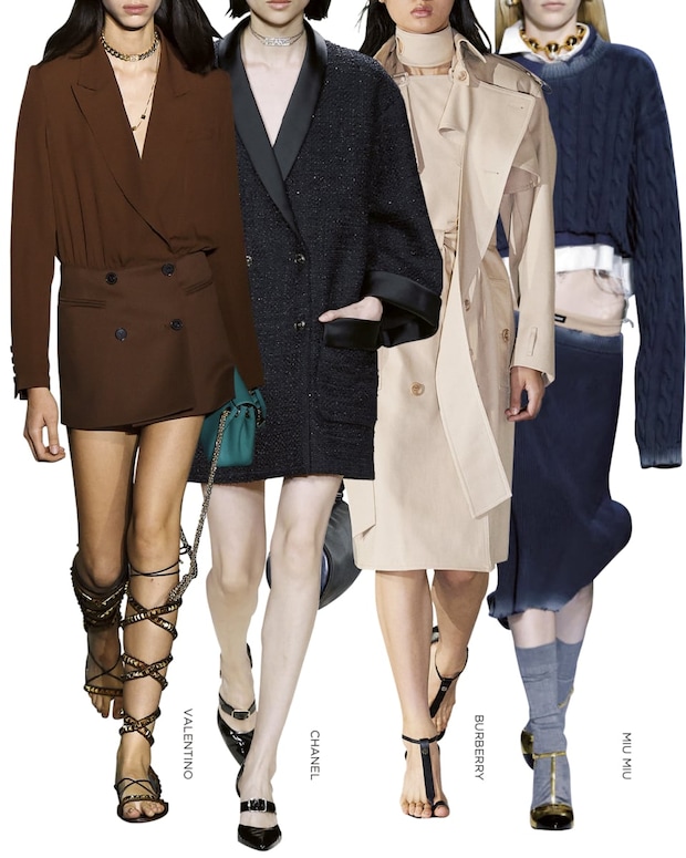 新解釈された定番とその着こなしもお見逃しなく。ミニドレスのように着るジャケットや、一捻りある変形トレンチ、優等生な印象を裏切るショート丈のシャツなど、見慣れたベーシックアイテムが新鮮に。スタイルヒントになるルックはしっかりマークすべし。