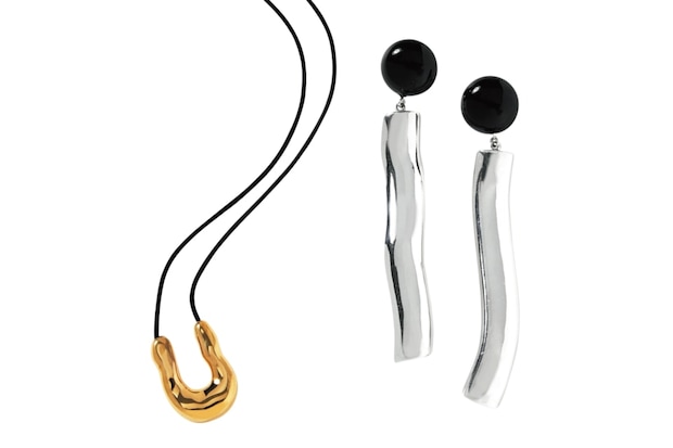「リサイクル素材使用。毎年買い付けします」ネックレス¥38,500、ピアス¥53,900(共にアグメス/ジャーナル スタンダード レサージュ 銀座店)