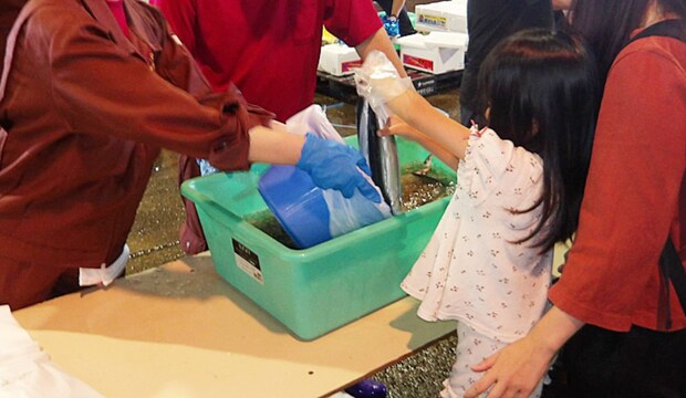 また、「魚介類のつかみ取り」は、どんな魚介が登場するかは当日のお楽しみ。