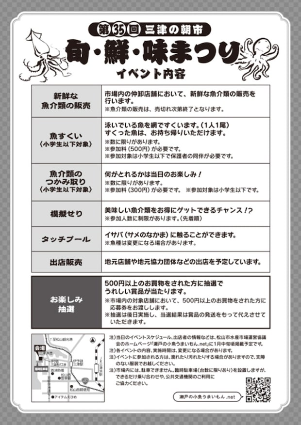 仲卸店舗や出店コーナーで500円以上の買い物をすると「お楽しみ抽選会」の応募券がもらえます。