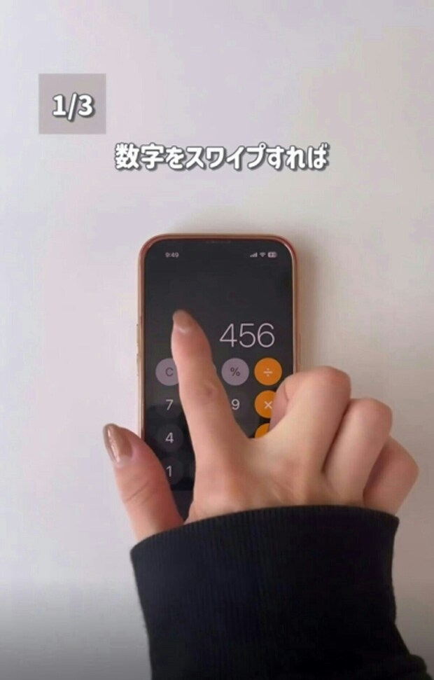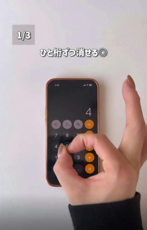 消したい数字を指で横向きにスワイプすると、1桁ずつ消すことができるとのこと。