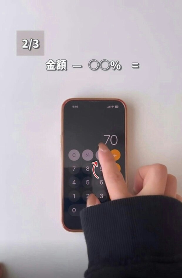 2つ目は、スーパーの割引商品を計算する際や、セールで役立つ裏技です。