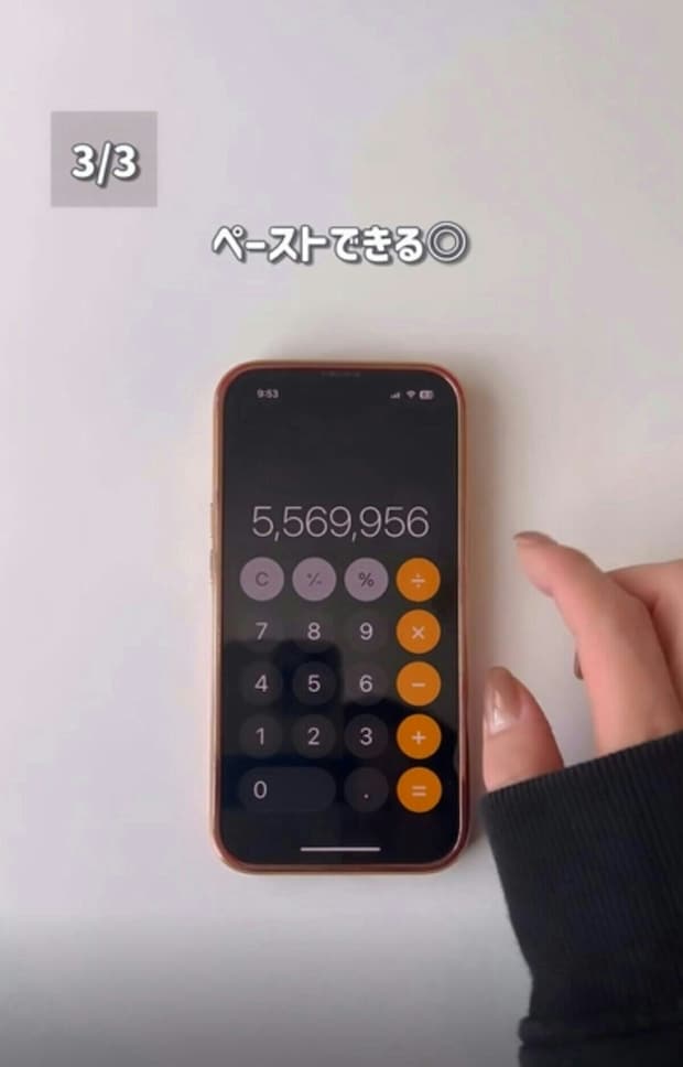 算出した数字を長押しすると「コピー」という表示が出てきます。