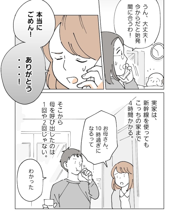 「うん大丈夫!今からだと始発間に合うわ!」電話口の母は少し慌てた様子でしたが、迷うことなく引き受けてくれました。私の実家は新幹線を使ってもこっちの家まで4時間かかる場所にあります。そこから母を呼び出したのは一度や二度じゃありません。でも共働きの私たちには、そうするしか選択肢がなかったのです。