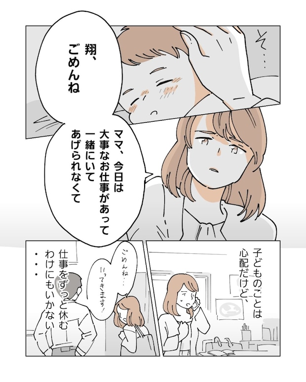 私は翔の頭にそっと手を置くと「翔ごめんね、ママ今日は大事なお仕事があって一緒にいてあげられなくて」とつぶやき、急いで家を後にしました。子どものことは心配だけど育てていくためにはお金が必要だし、仕事をずっと休むわけにも、簡単に辞めるわけにもいきません。