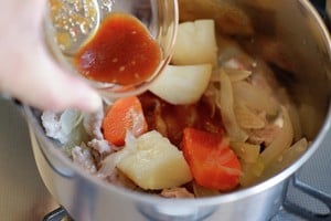 市販の中辛ルーと豚こま肉、玉ねぎ、じゃがいも、にんじんで作ったベーシックなポークカレーに加えて、味わいがどのような変わったかレポートします!