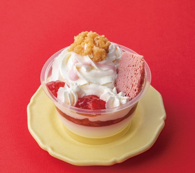 ミルクプリンにいちごを使った様々な具材を盛り付けたカップパフェ。いちごとミルクの味わいを存分に楽しめる。