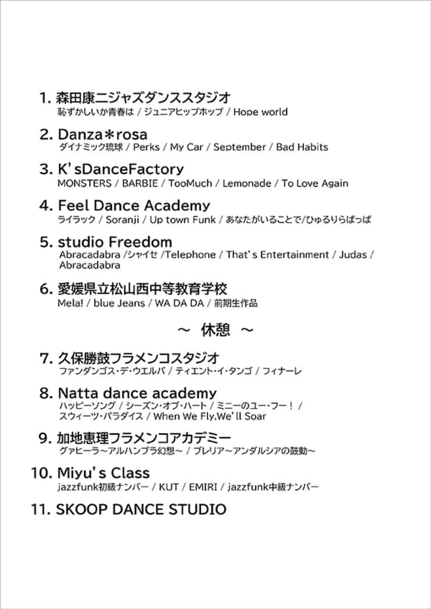 今年のフェスティバルには、愛媛県を代表するダンススタジオや学校チームが多数出演!