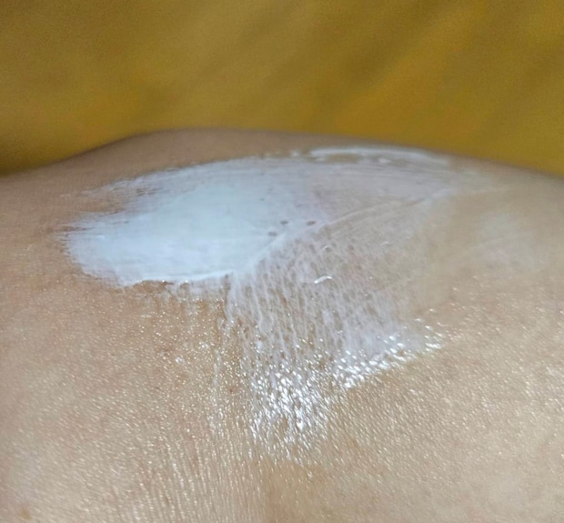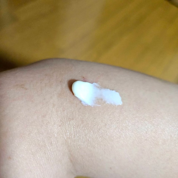 お目汚し失礼いたします。ちょっとカサカサしているひじのあたりに塗ってみましょう。