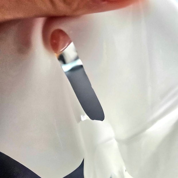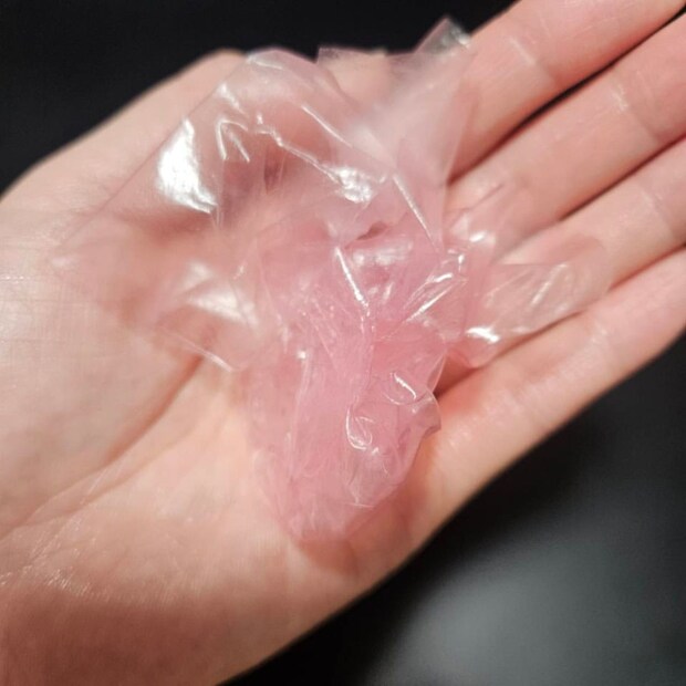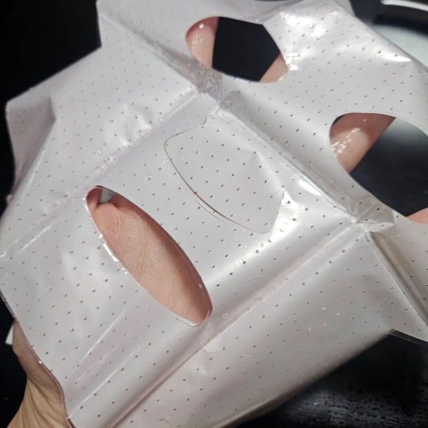 数時間後のフィルムマスクがこちら。貼ったときは気づかなかったけどうっすらピンクなのねあなた。