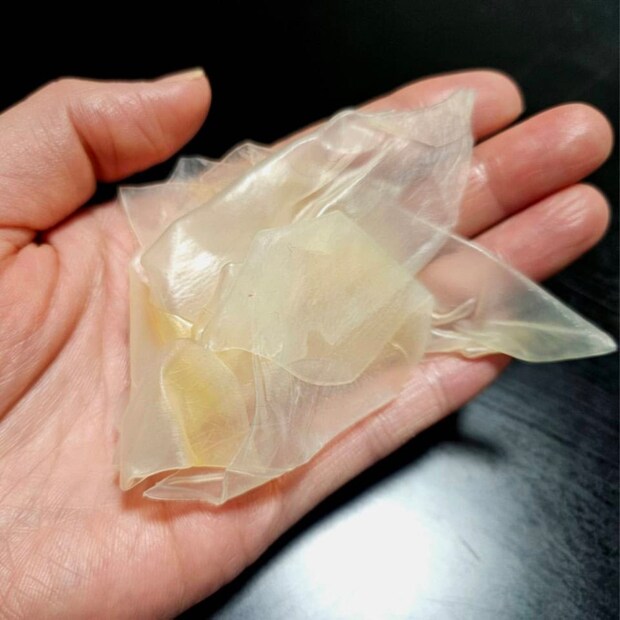 お役御免となったゆずゲルマスクの残骸。一晩、潤してくれてありがとう……!