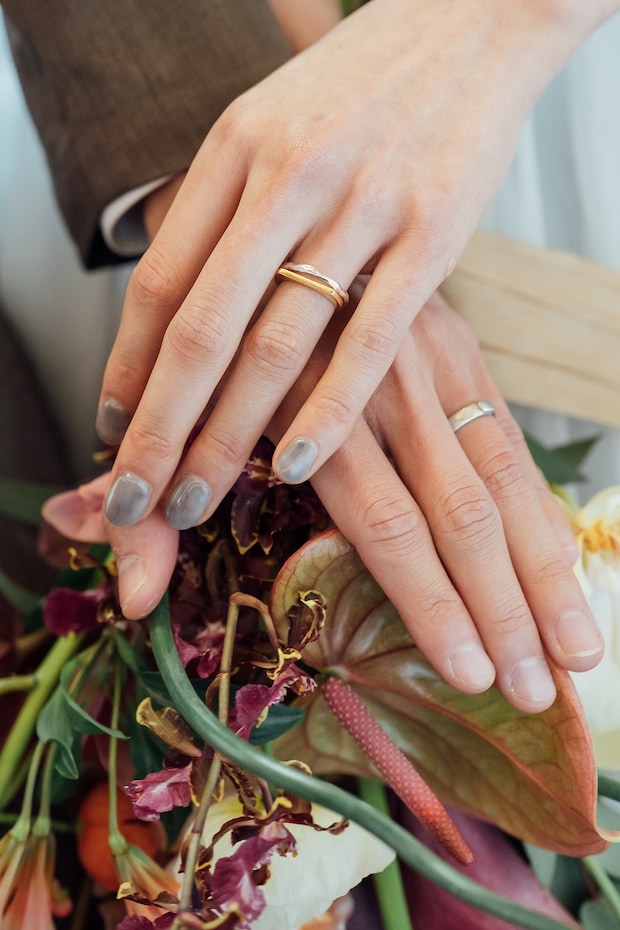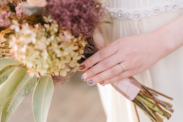 あえて全ての指をグリーンにしないことで、軽やかさが生まれてドレスやブーケとの相性もぐっと上がります。