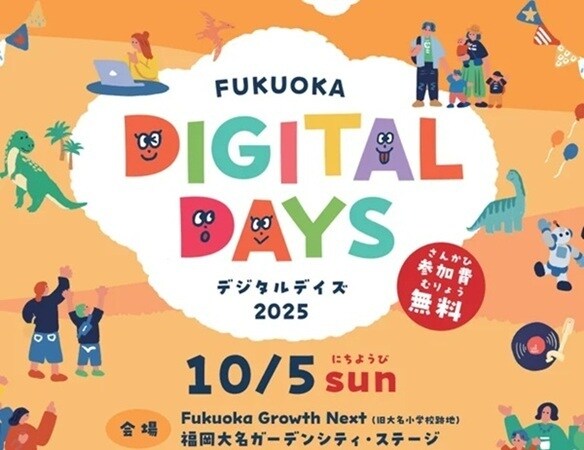 『FUKUOKA DIGITAL DAYS 2025』は、Fukuoka Growth Next(旧大名小学校跡地)で開催されるデジタル体験による社会貢献イベント。日時は10月5日(日)の11:00~15:00に予定されている。