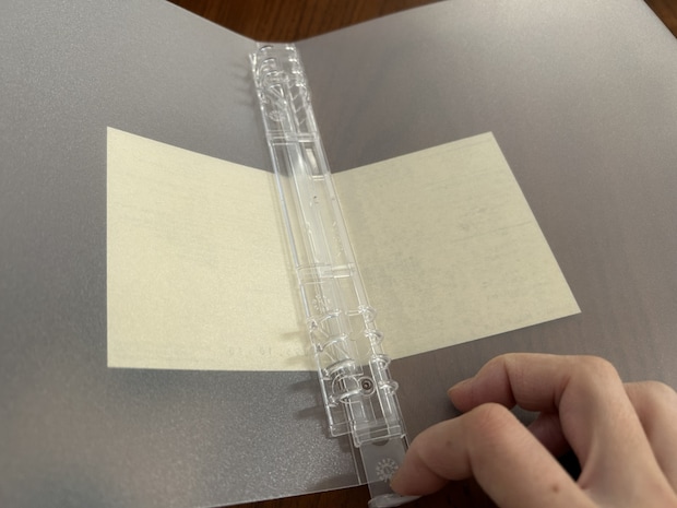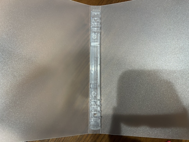 無印には複数のバインダーがありますが、カバーが半透明、中のリングが樹脂製のタイプのものになります。