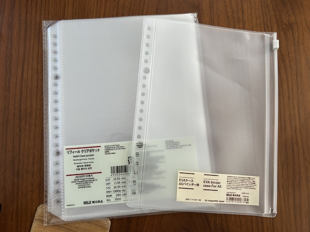 一緒に購入したリフィルは「リフィルクリアポケット」と「EVAケース A5バインダー用」の2種類。