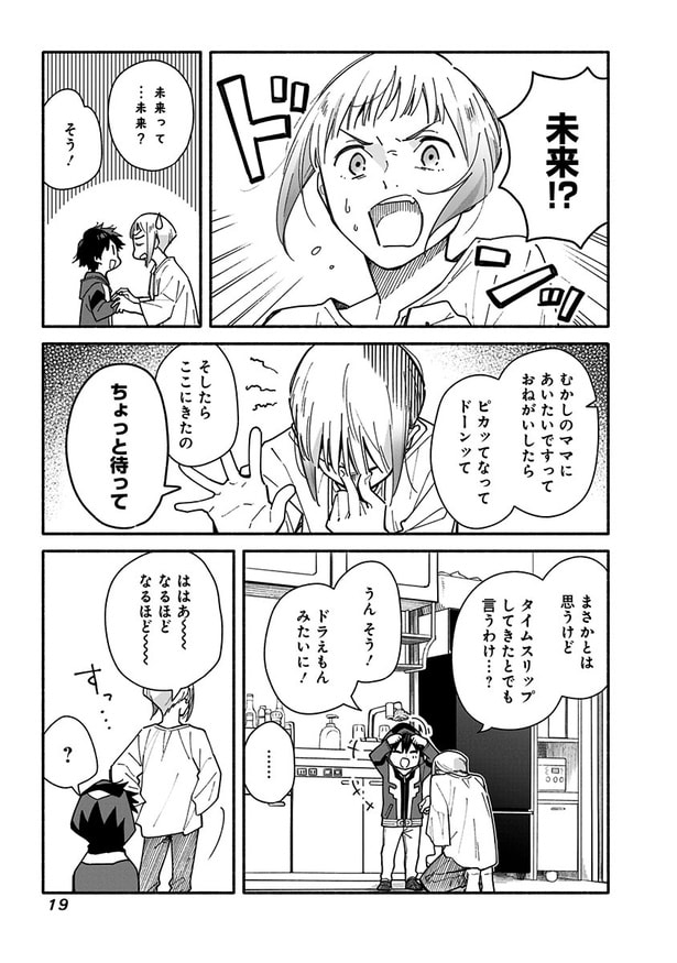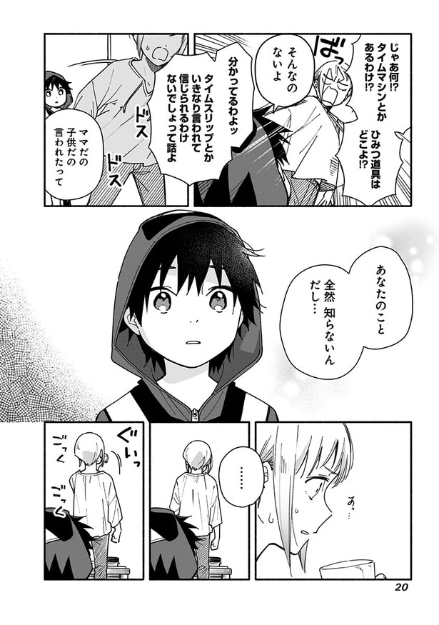 前回、アパートに雷が落ちたと思ったら、未来の部屋に突然現れた謎の少年。そして、状況を飲み込めない未来に向かって少年は「ママだ―っ」と抱きついてきた。少年は“颯太”と名乗り、「ミライからきた」と言うのだが…?