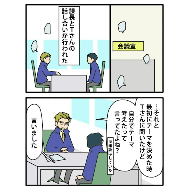 ところが、ほどなくしてTさんが作成した資料が盗作であることが発覚。課長は、Tさんと面談をします…。