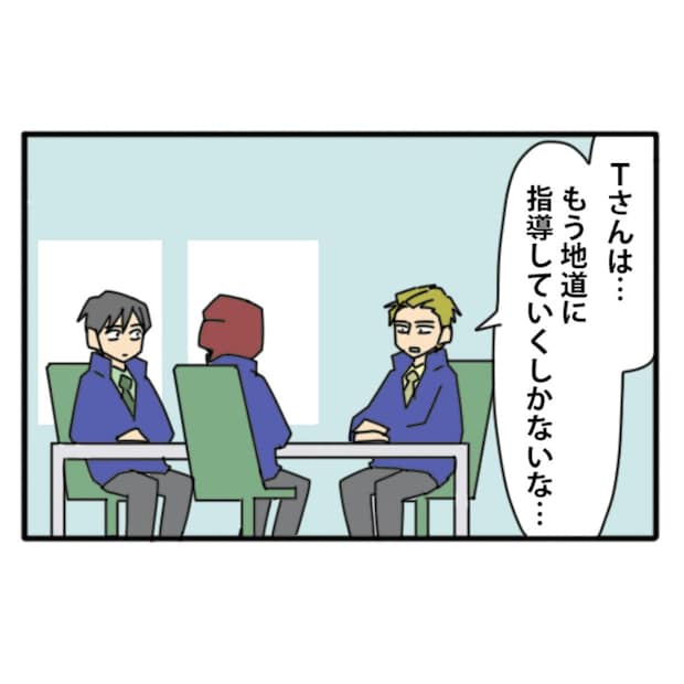 それでも、周囲はまだTさんを見捨てずに、我慢強く指導を続けようとしています。こんなに素敵な職場、ありませんよね。Tさんが、早く改めてくれることを願うばかりです。