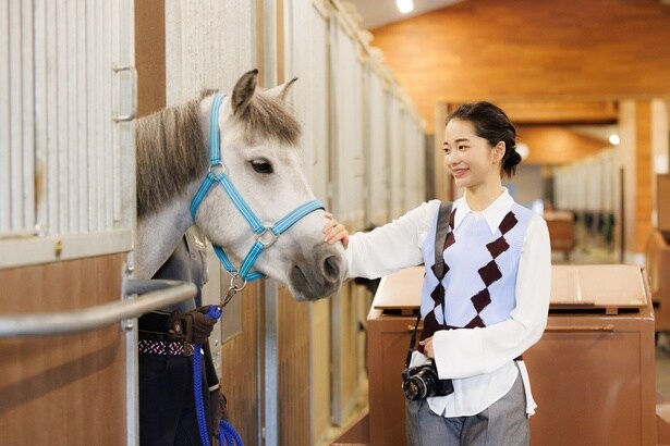 【見上愛】そうですね。触れたり、乗馬の経験もあるので、怖さはありません。馬は人の感情をよく感じ取ると聞いたことがあって、こちらが怖がっていると距離が縮まらないと思うので、今日もまずはきちんと挨拶をするように心がけました。