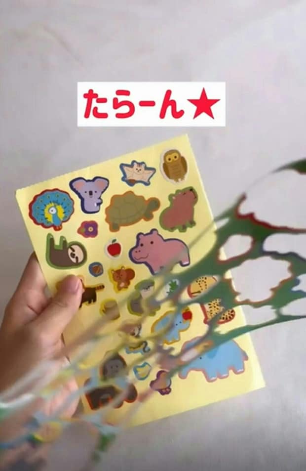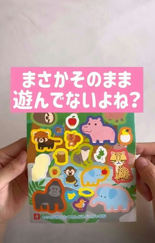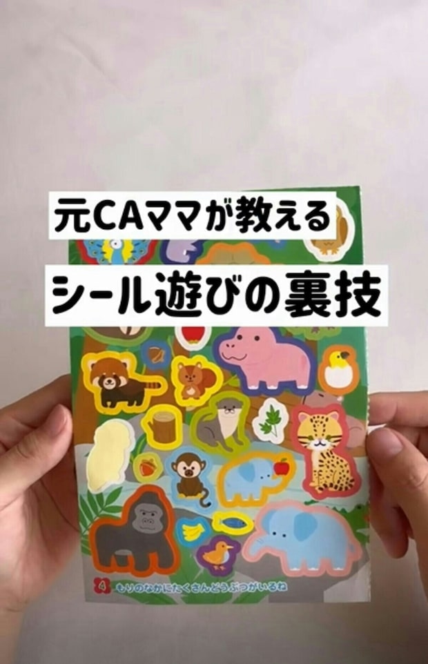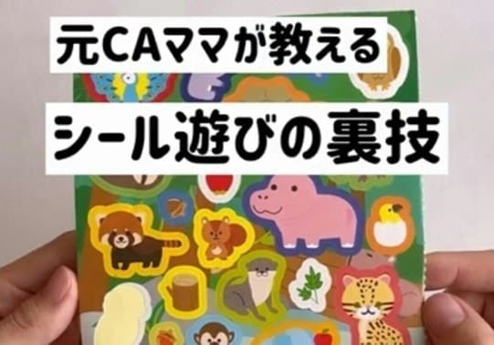 この裏技は、まだ自分でシールをはがすことが難しい、小さな子どもにおすすめの裏技。月齢に合わせ、子どもを見守りながら遊びましょう。また、シールの誤飲にはくれぐれも注意してください。