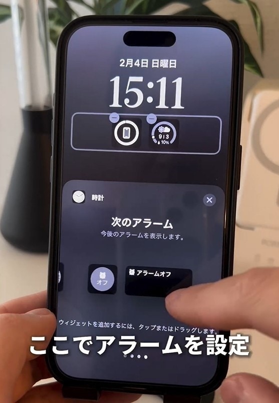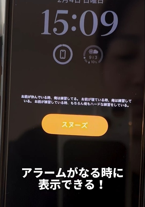ロック画面でアラーム設定が見られる