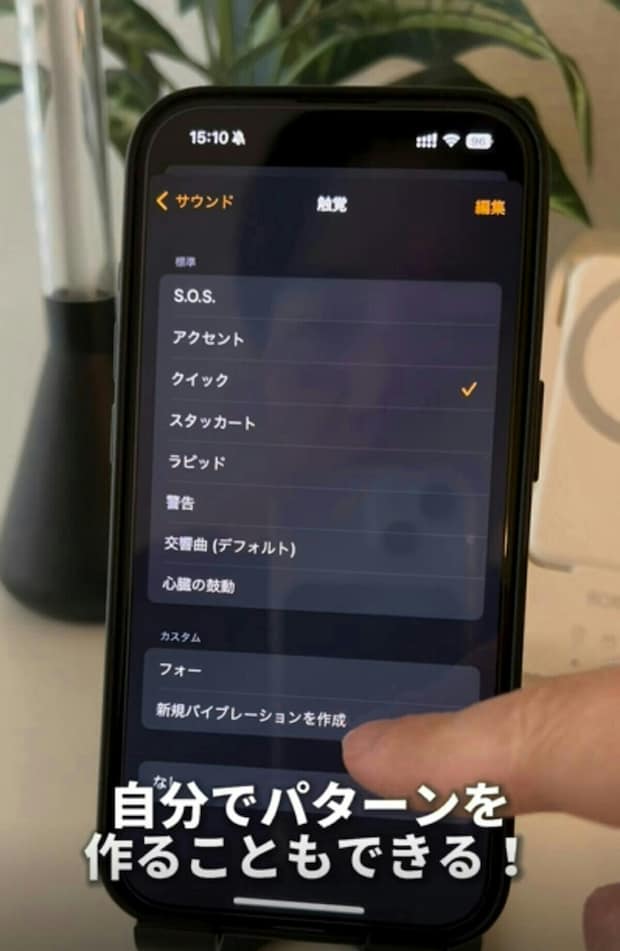 また、「新規バイブレーションを作成」を選択すると、自分でパターンを作ることができます。