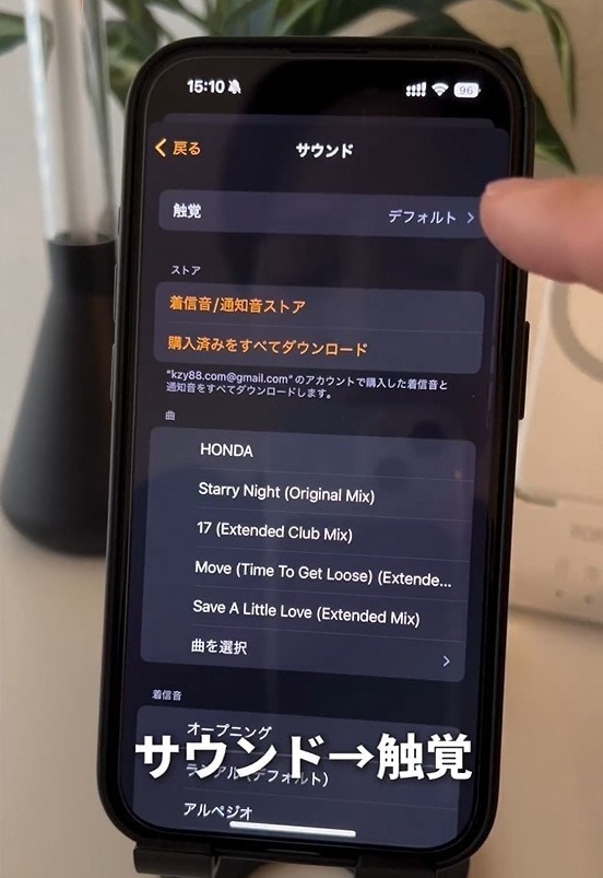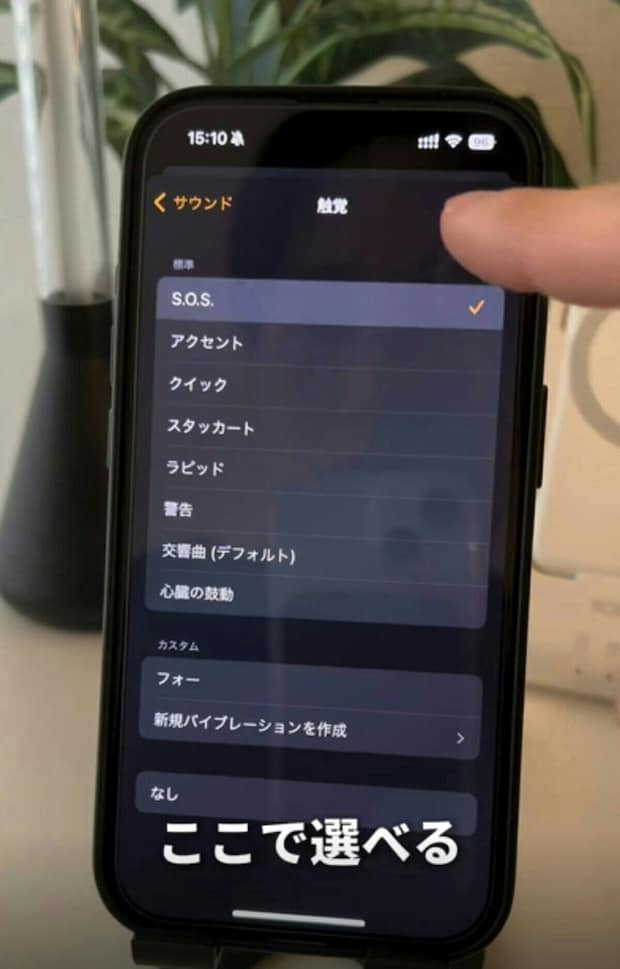 振動のパターンは、「サウンド」の画面の上部分にある「触感」(もしくは「バイブレーション」)を選択すると、選ぶことができますよ。