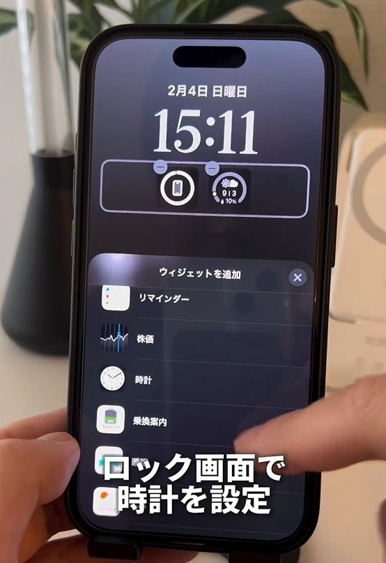 ロック画面で時計を設定します。