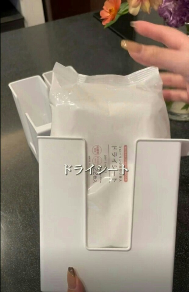 フローリングの掃除に使う、ドライシートの収納にもぴったりです。